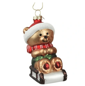 Ozdoba świąteczna - miś w czerwonym stroju z prezentem