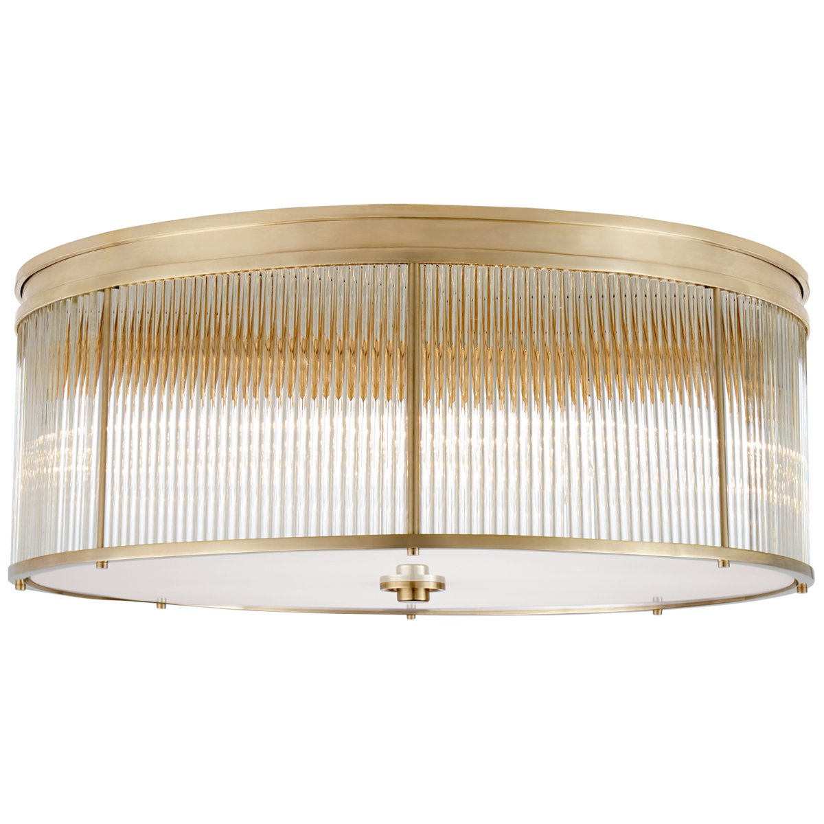 The Allen plafond by Ralph Lauren Home is made of brass and white glass rods. The lamp has a socket for an E 27 bulb. Dimensions: 23.5 x 61 cm.