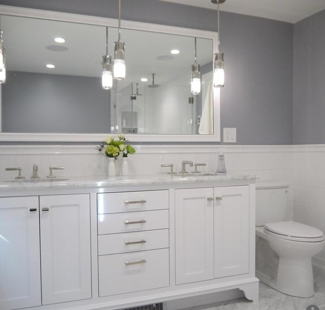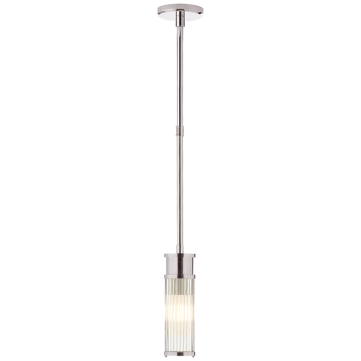 The Allen Mini pendant lamp by Ralph Lauren Home is made of polished nickel and white glass rods. The lamp has a socket for an E 27 bulb. Dimensions: 114.3 x 43.2 cm.