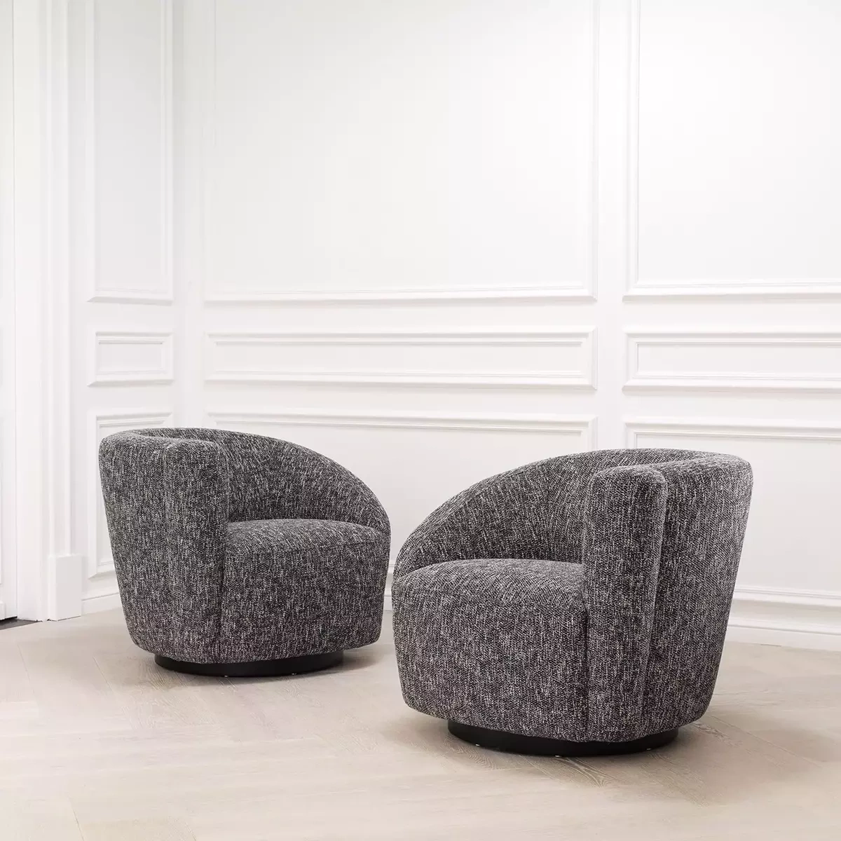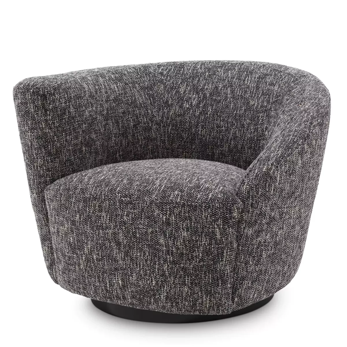 - The Colin Left armchair by Eichholtz has a black base and is finished in Cambon black fabric. The chair has a swivel base.