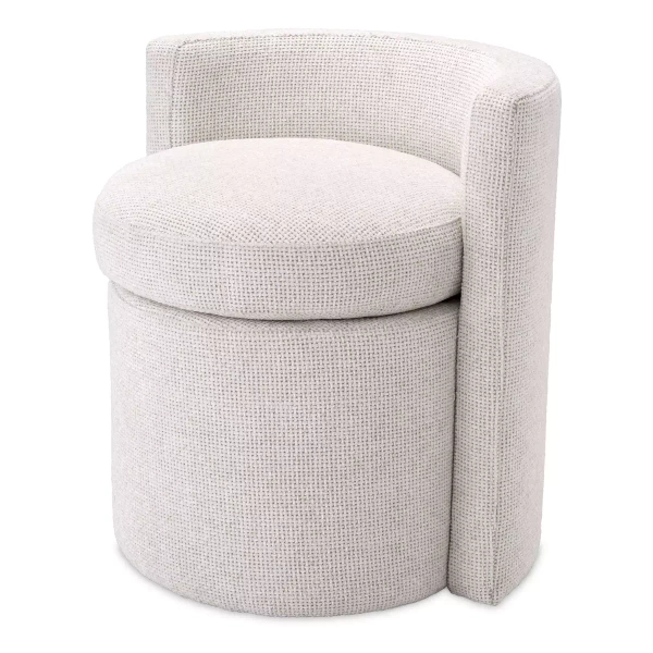 - Arcadia pouffe by Eichholtz was made with Lyssa off-white fabric upholstery.