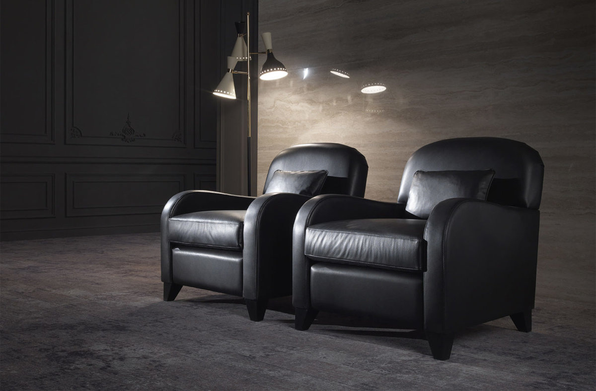- The Cardiff armchair by Gianfranco Ferré Home features a beechwood and foam structure, a black lacquered frame, and a Category A leather upholstery. Decorative cushion not included.