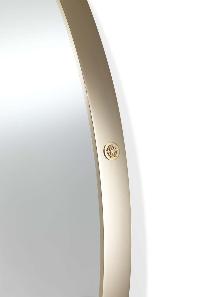 - The Casquet mirror by Roberto Cavalli Home Interiors is made of metal and finished in a gold color.