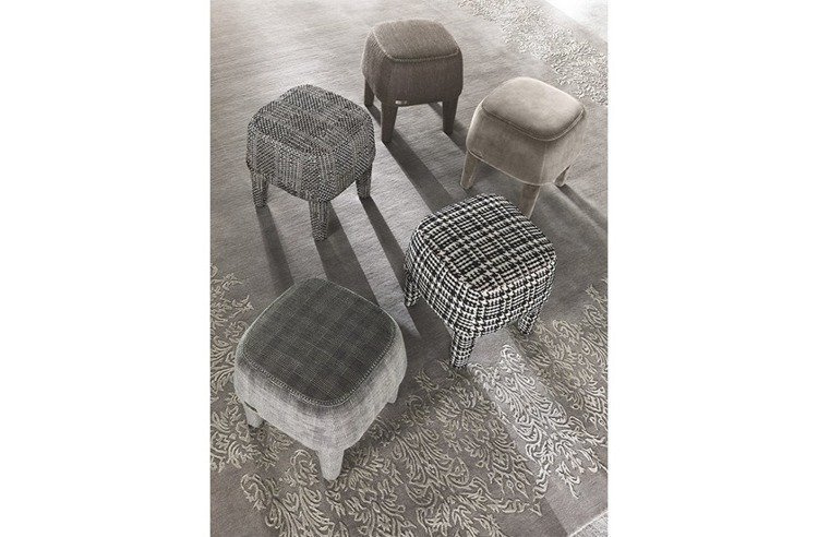 • Mini pouffe by Gianfranco Ferré Home is made of wood and foam and finished with checkered upholstery.