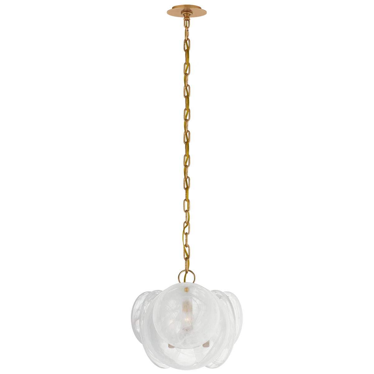 - Żyrandol Loire projektu Aerin został wykonany z niklu polerowanego na wysoki połysk oraz wykończony szkłem w białym kolorze. Lampa posiada gniazdo na żarówkę E 14.