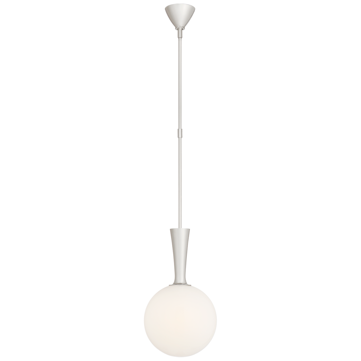 - Lampa wisząca Barrel projektu Aerin została pozłocona oraz wykończona szkłem w białym kolorze. Lampa posiada gniazdo na żarówkę E 14.