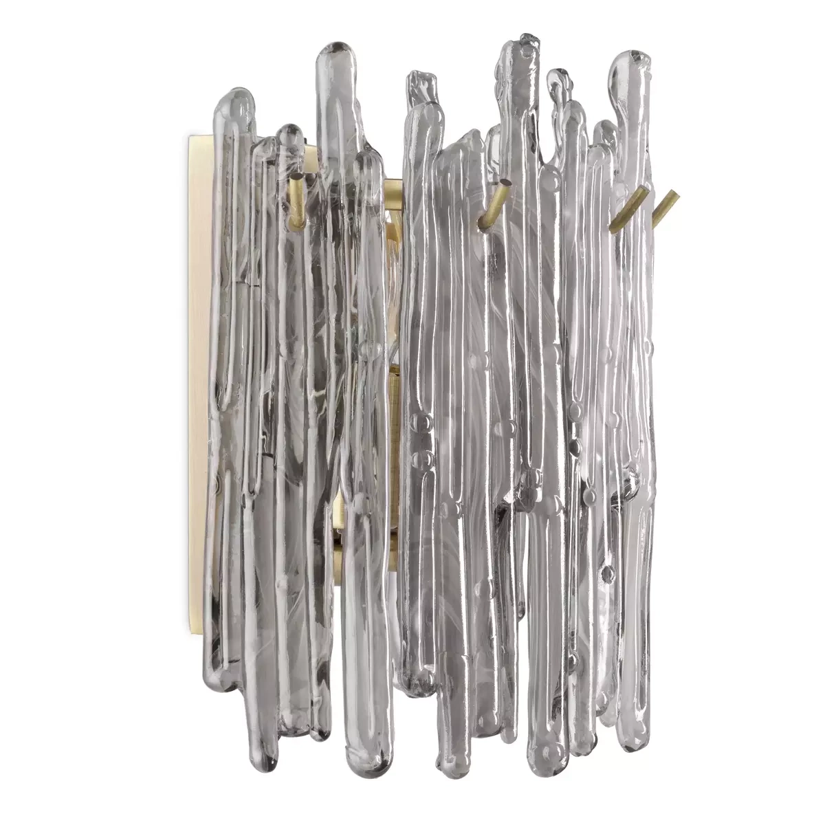 - The Saint Roch wall lamp by Eichholtz is made of bright brushed brass and finished with tinted glass. The lamp has a socket for an E 14 bulb.