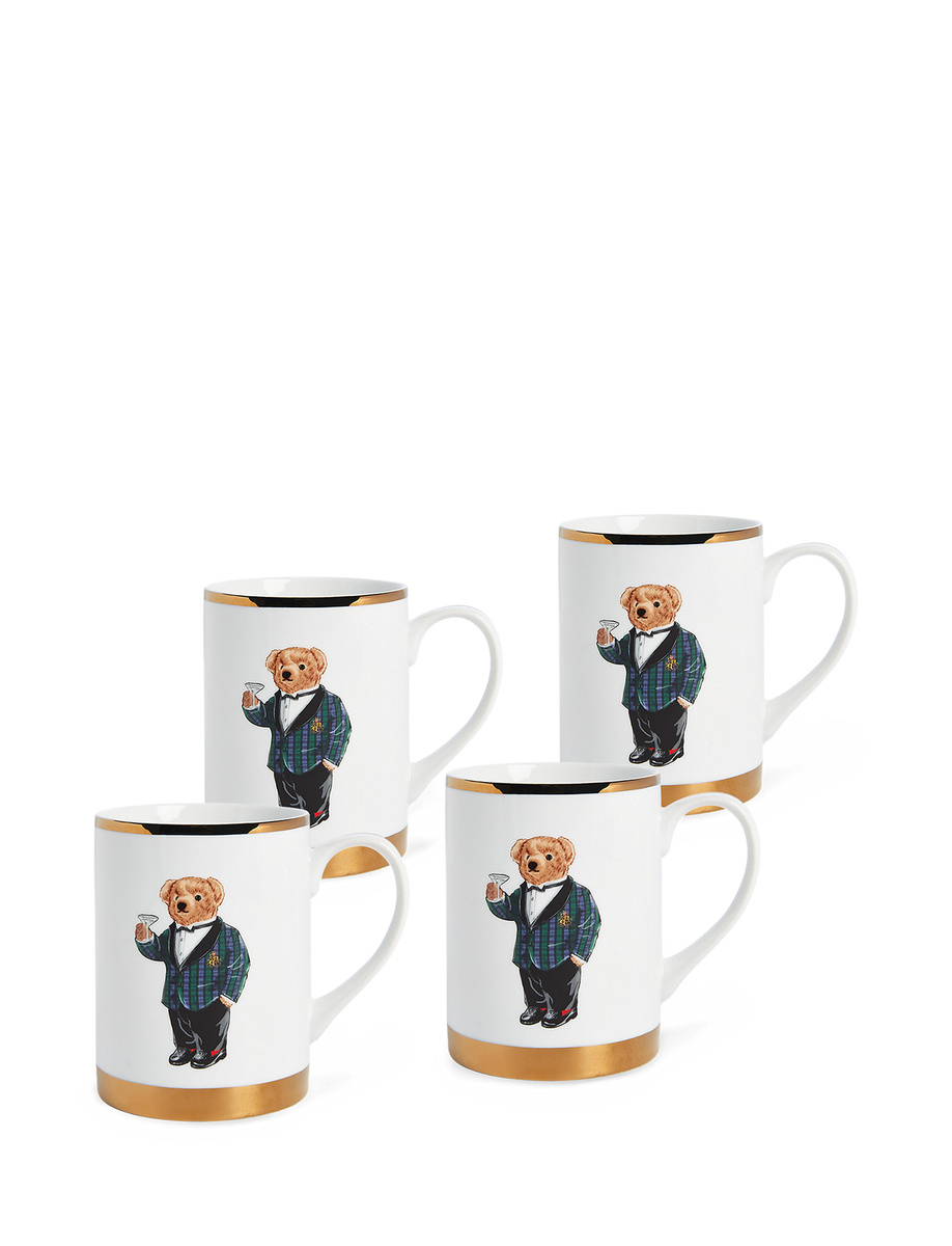 • Ralph Lauren's iconic Polo Bear is dressed in his best eveningwear on this playfully luxe mug. Gold accents lend a stately appeal.