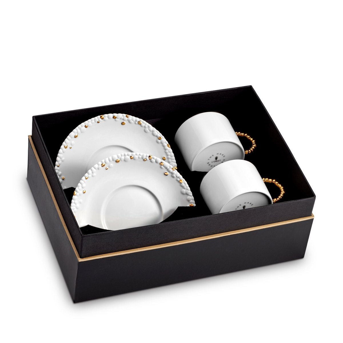 - The set of two Mojave tea cups by L'Objet, from the Haas Brothers collection, is made of porcelain and finished in white with a 24 karat gold finish.