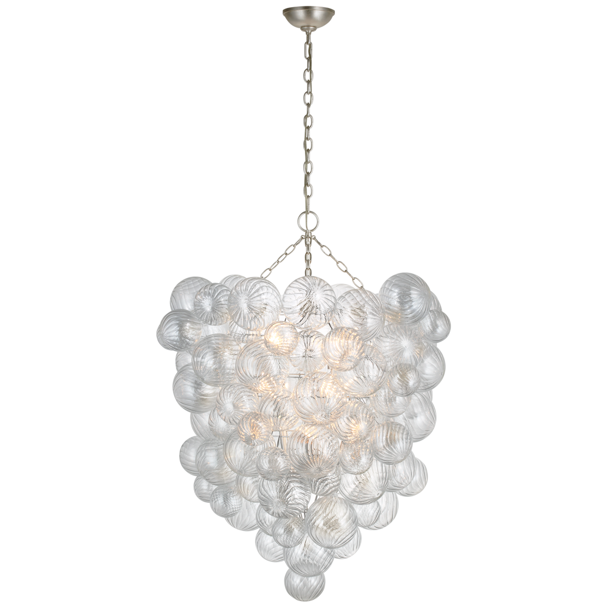 - The Talia Grande chandelier by Julie Neill is made of polished nickel with a clear glass finish. The lamp has an E14 bulb socket.