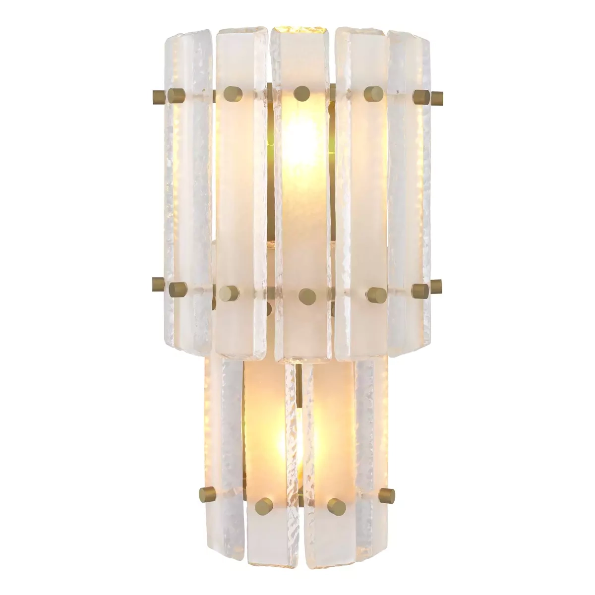 - The Blason wall lamp by Eichholtz is made of antique brass and finished with frosted glass. The lamp has a socket for an E 14 bulb.