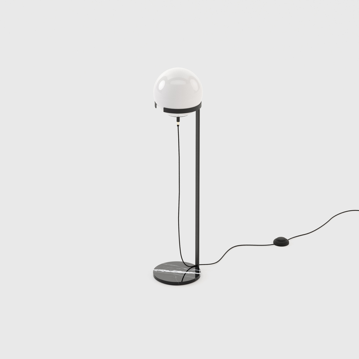 - Clarke floor lamp by Laskasas design is made of black iron and finished with polished stainless steel and glass shade. The lamp has a ceramic base.