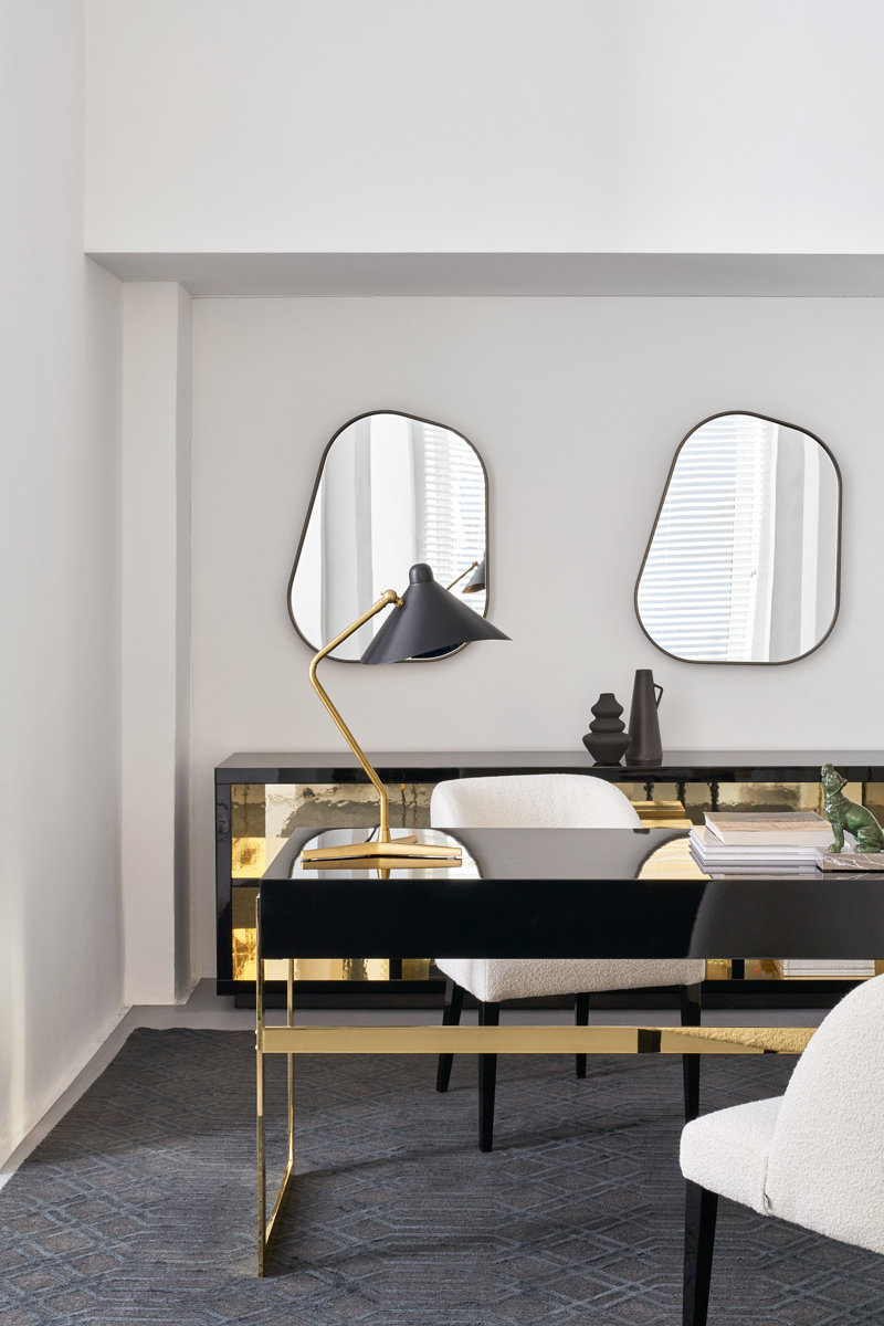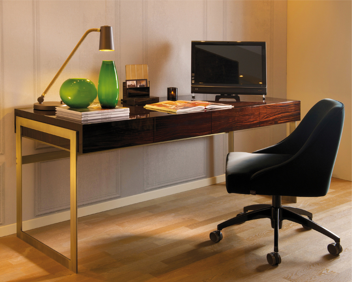 - The Stephanie desk by Dom Edizioni is made of brass and finished with an ebony top. Product available in various finishes.