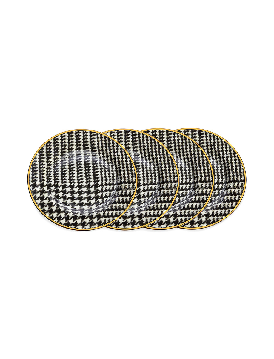 Inspired by Ralph Lauren's Autumn 2017 Runway Show, this plate set features an elegant houndstooth pattern in understated black-and-white enclosed by a sophisticated gold rim.