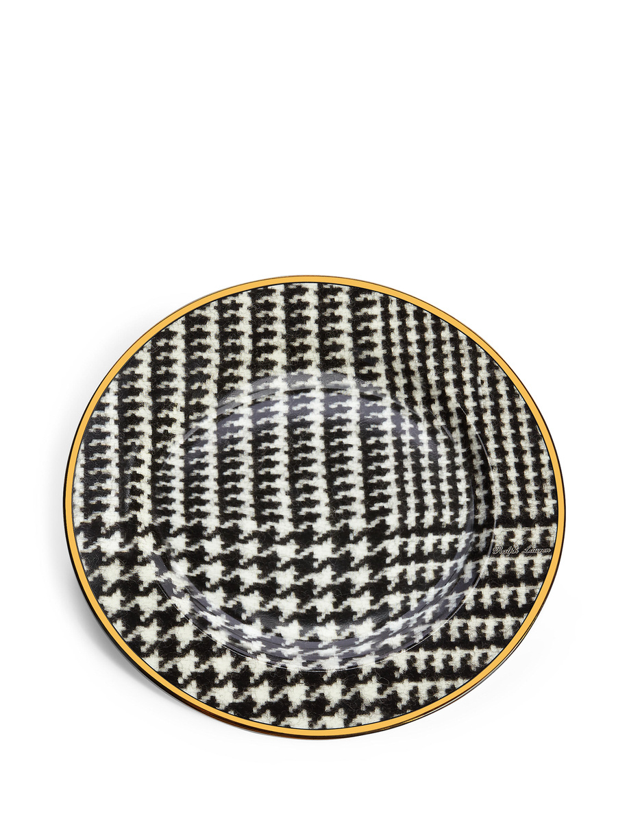 - Inspired by Ralph Lauren's Autumn 2017 Runway Show, this plate set features an elegant houndstooth pattern in understated black-and-white enclosed by a sophisticated gold rim.