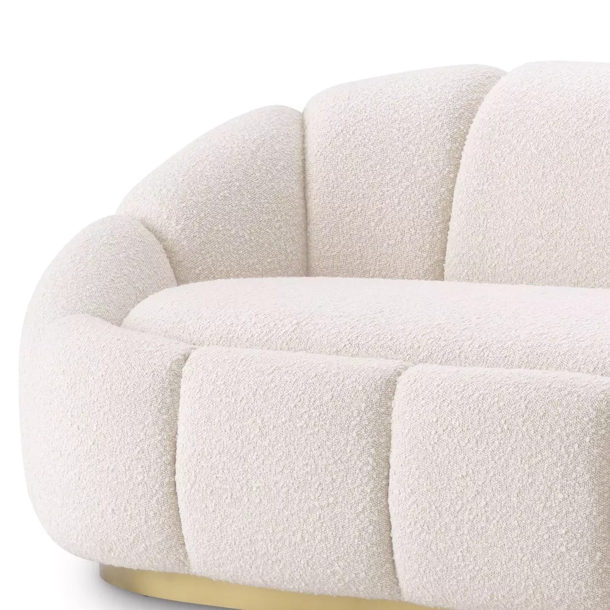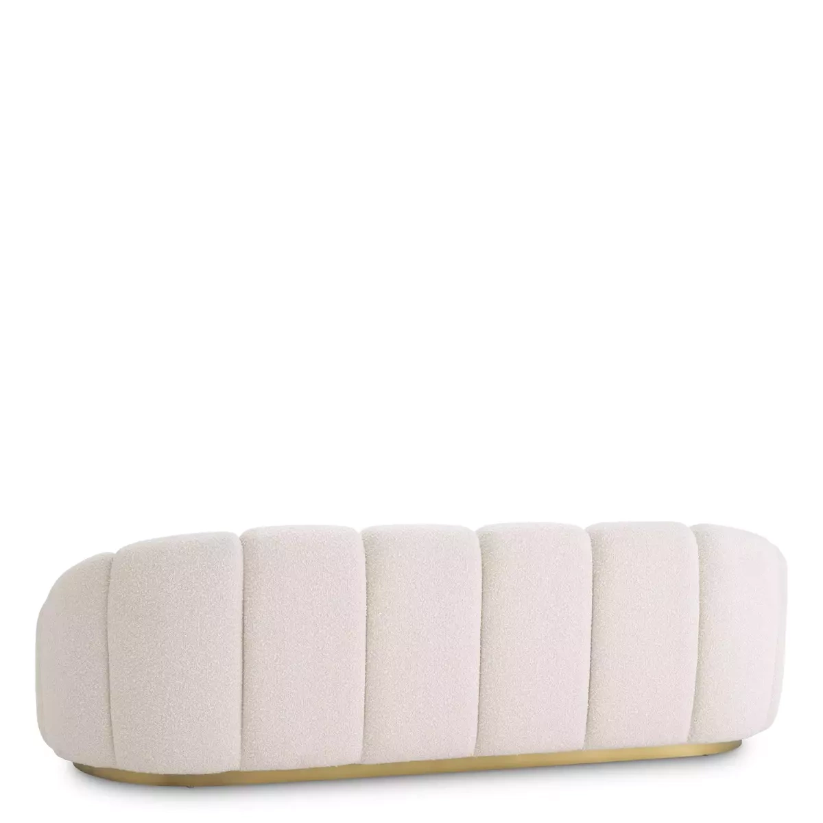 - The Inger sofa by Eichholtz is made with Bouclé cream fabric and finished with a brushed brass base.