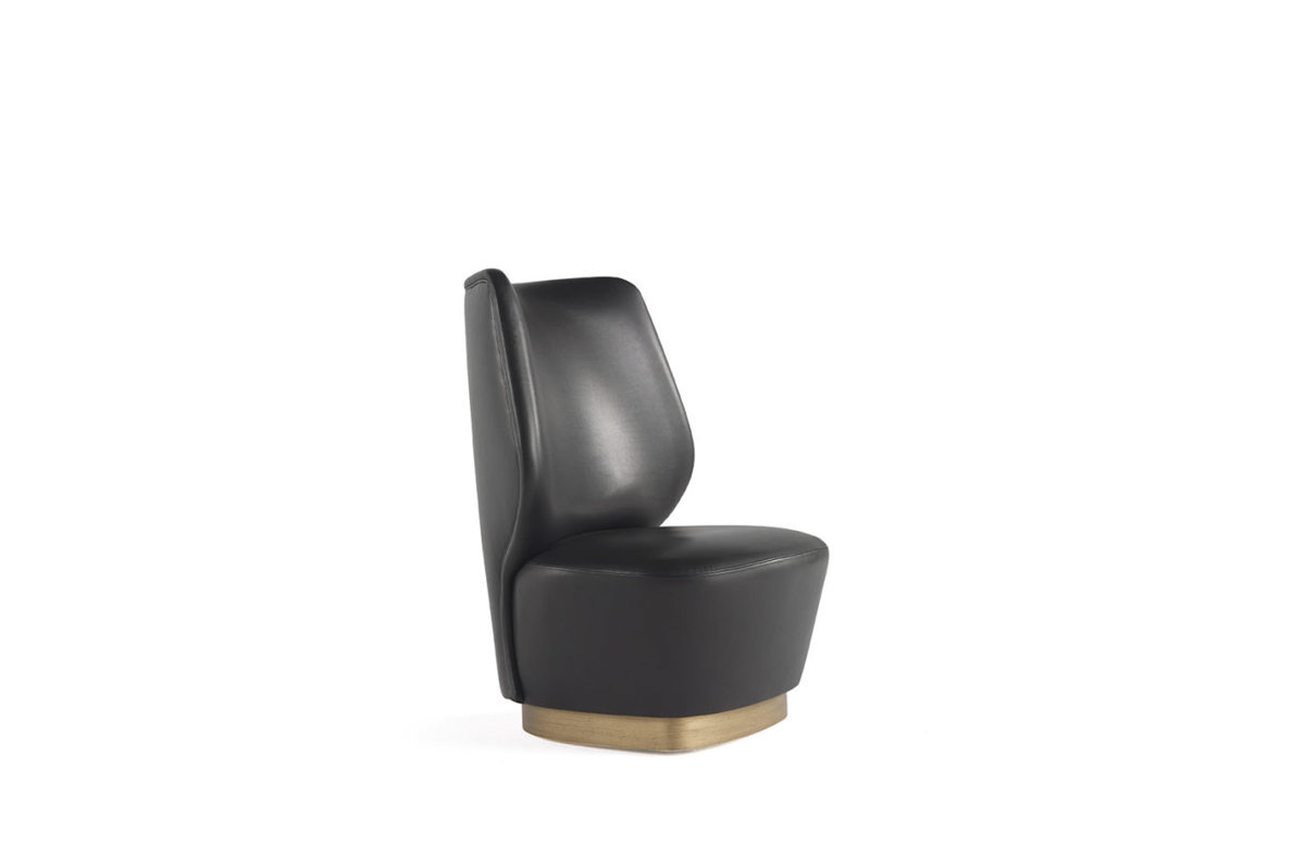 • Marvila armchair by Gianfranco Ferré Home is made of beech wood and polyurethane foam and finished with leather upholstery in black color.