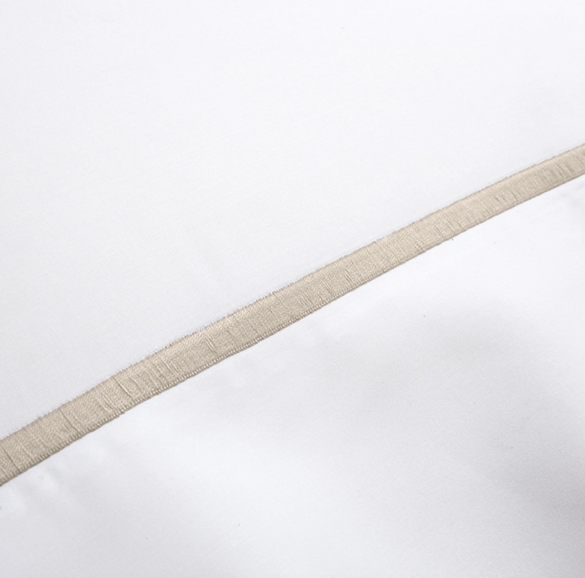 • The pillowcase by Yves Delorme, from the Athena collection, is made of 100 percent Egyptian cotton 500 thread count and finished in white with beige stitching.