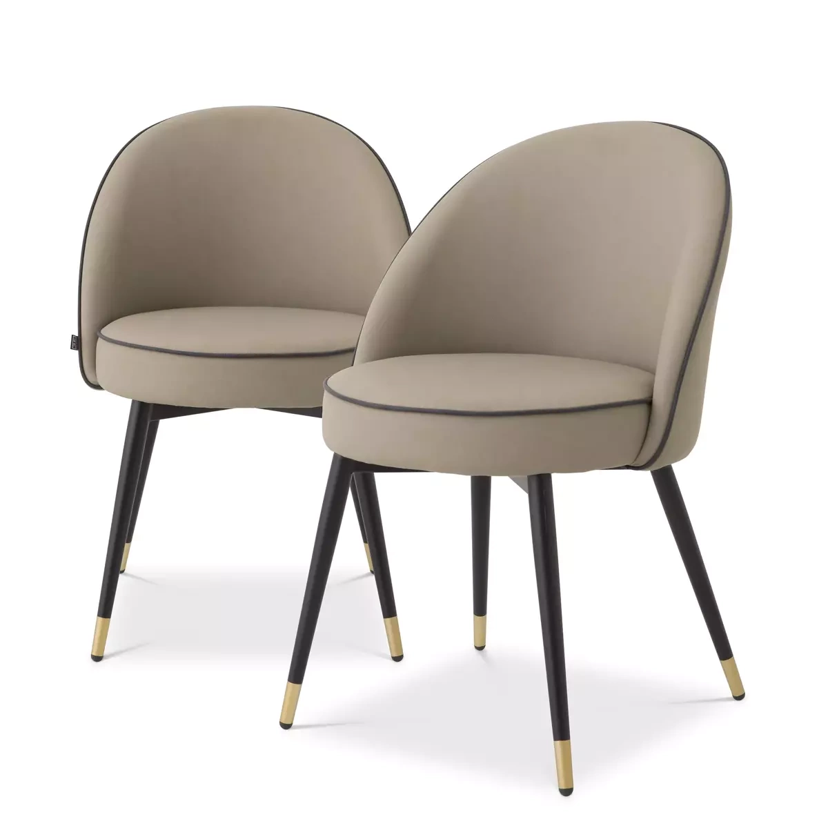 - Cooper chair by Eichholtz is made of leather in beige color. The chair has black legs and brass details.