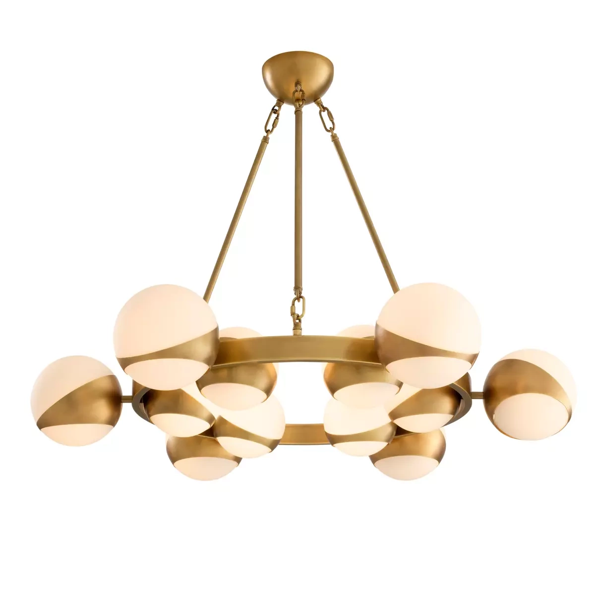 • Żyrandol Amazone S firmy Eichholtz został wykonany z niklu oraz wykończony przyciemnianym szkłem.