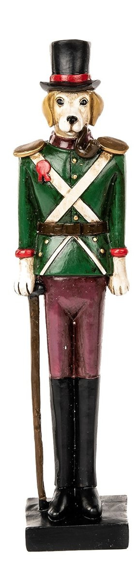 - Christmas ornament in the shape of a dog in a suit was made of glass and covered with green and red enamel.