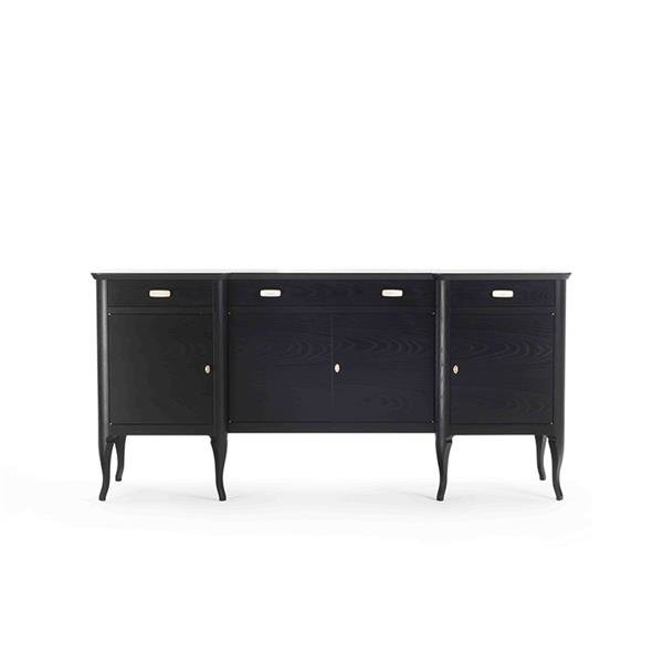 A minimalist yet functional aesthetic defines this unique collection of nightstands, which thanks to their properties will perfectly fit into both modern and classic interiors simple but elegant design. Its important structure with soft and rounded lines is brightened by slender legs with a unique style. Evoking the elegance of a classic decor, these pieces feature Art Deco brass handles.