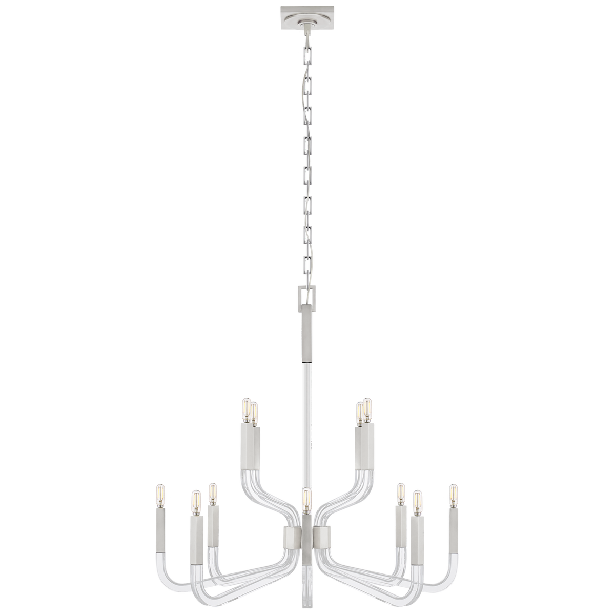 - The Reagan Medium chandelier by E.F.Chapman is made of polished nickel and crystal. The lamp has a socket for an E 14 bulb.