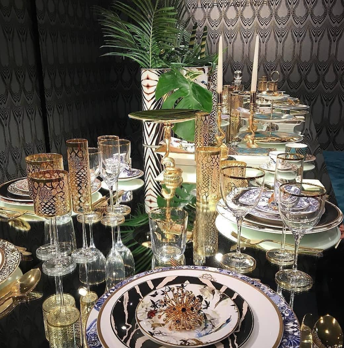 • The champagne glass by Roberto Cavalli Home, from the Monogram Gold collection, is made of 24% shiny crystal and finished with gold details.