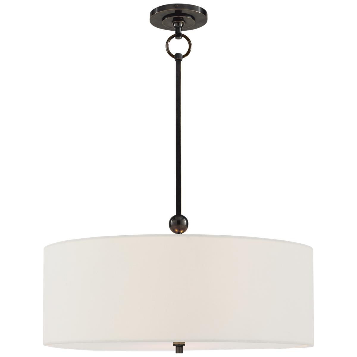 Reed Thomas O'Brien pendant lamp by Visual Comfort in brown with a linen lampshade. The lamp has sockets for E 27 bulbs.