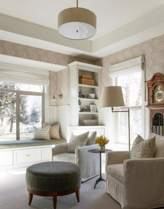 • Reed Thomas O'Brien pendant lamp by Visual Comfort in brown with a linen lampshade. The lamp has sockets for E 27 bulbs.