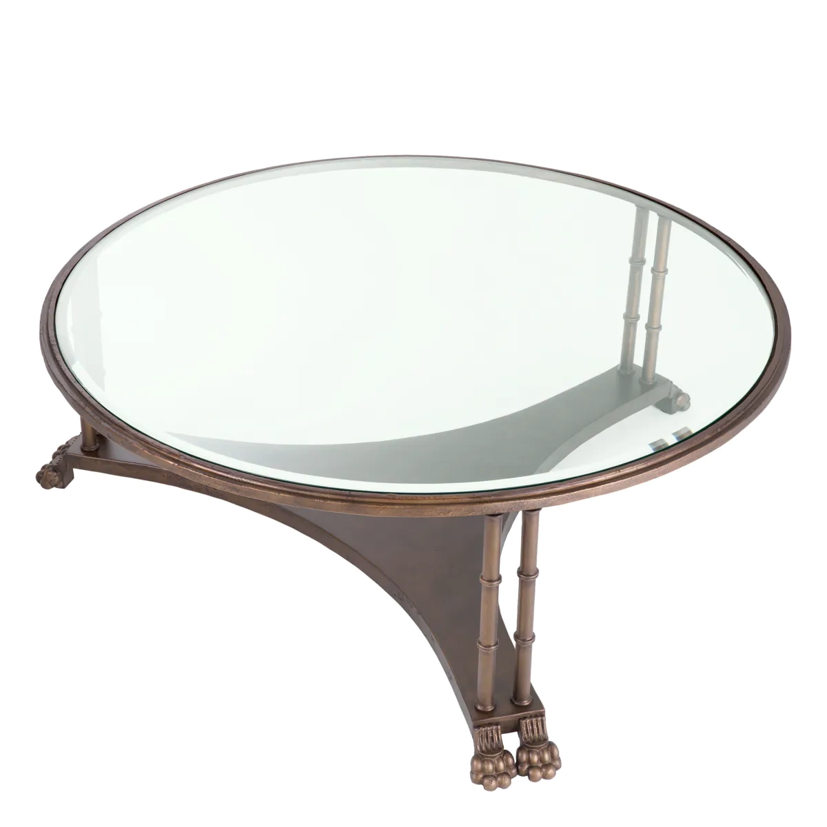 - Behold the "Side Table Lioness" by Eichholtz, an ode to a French tripod table. Exuding sophistication, the bronze portal finish on this perfectly complements the bevelled glass top. With measurements of 96 cm. in diameter x 36.5 cm in height,