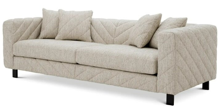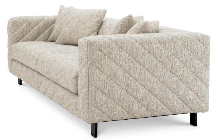 - The Avellino sofa by Eichholtz is upholstered in luxurious light gray Splendor fabric and plush padding.