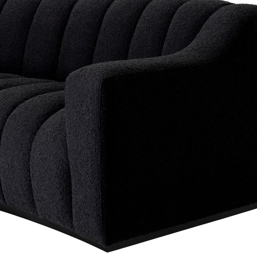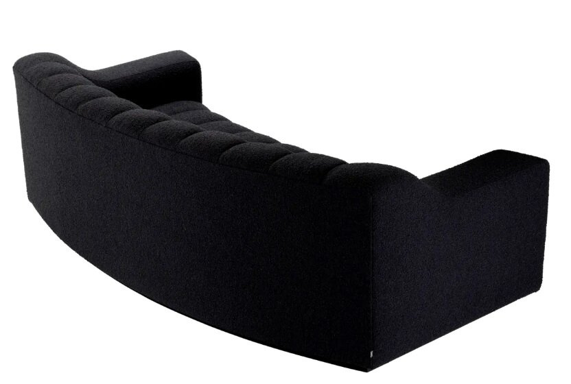 - Kelly S sofa by Eichholtz, upholstered in black bouclé.