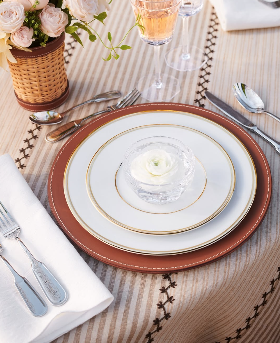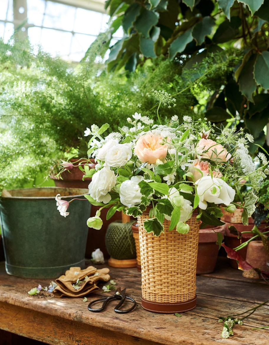 Inspired by the casual sophistication of Ralph Lauren’s restaurant in Paris, the Bailey vase combines woven rattan with supple leather trim and ticking stripes.