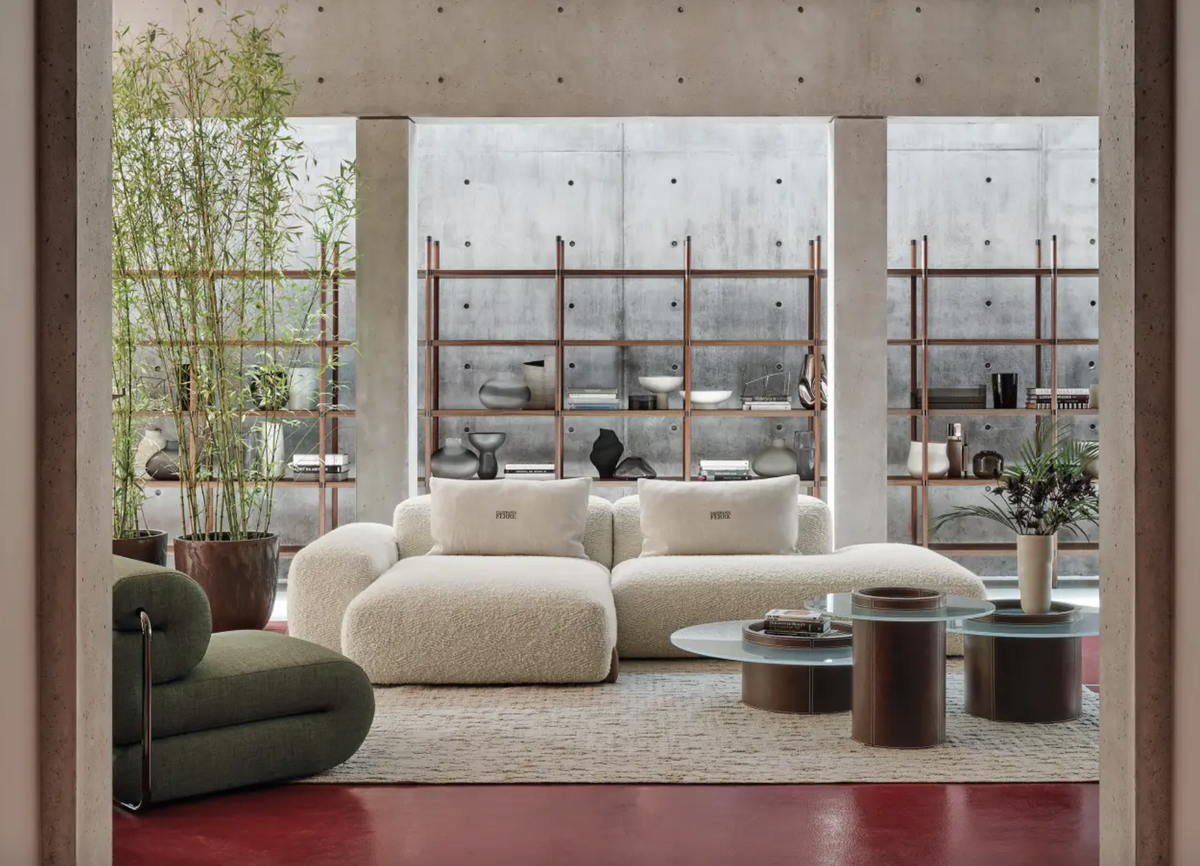- Gianfranco Ferré Home table, Havnen made of multi-ply poplar wood covered in saddle leather from the collection, with decorative stitching in contrasting colour, frosted clear glass top.