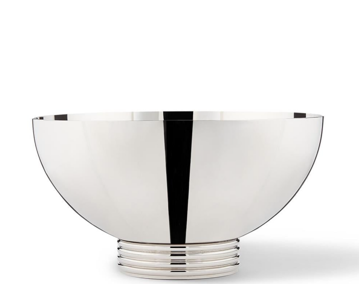 - Ralph Lauren Home, Thorpe nut bowl made from solid stainless steel with a shiny polished finish, has ribbed stripes reminiscent of Ralph Lauren's iconic Hudson St chair.