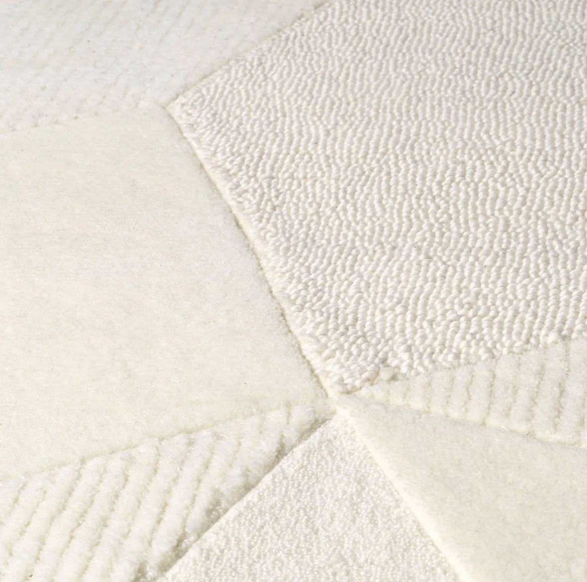 - Osumi rug by Eichholtz, in white, hand tufted, made of 90% New Zealand wool, 7% cotton and 3% polyester.