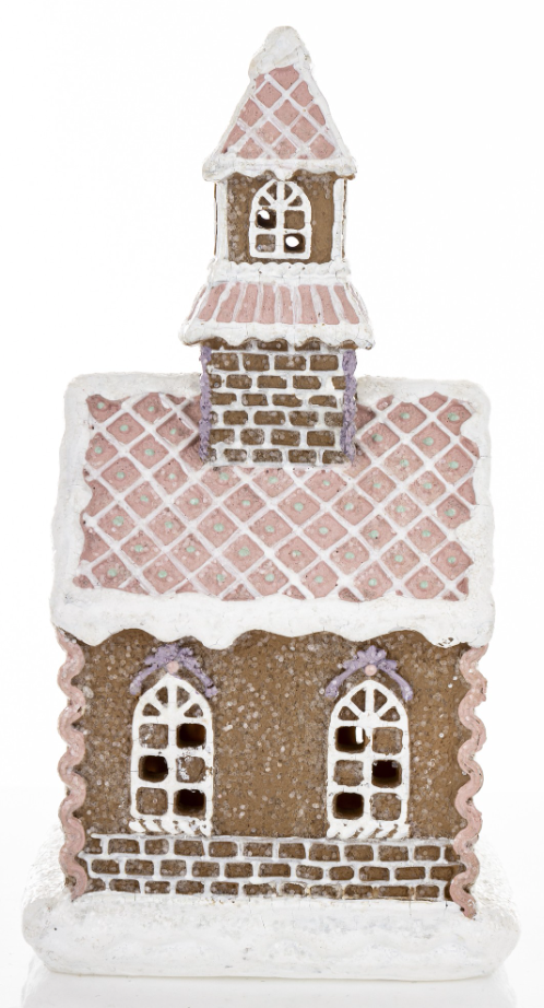 - A small, Christmas-themed LED gingerbread house with a square base, handcrafted, painted, and decorated with festive accents. It will bring the Christmas spirit to your home. Dimensions: height 23 x 12.5 x 10.5 cm