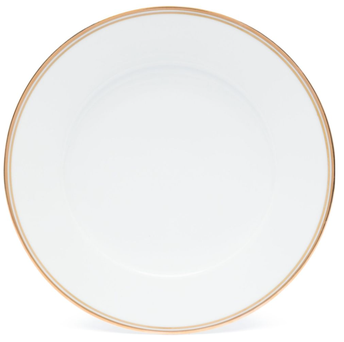 - The Ralph Lauren Home porcelain dinner plate, from the Wilshire collection, with hand-painted bands of 24K gold or silver-toned platinum, will complement any RL tableware.
