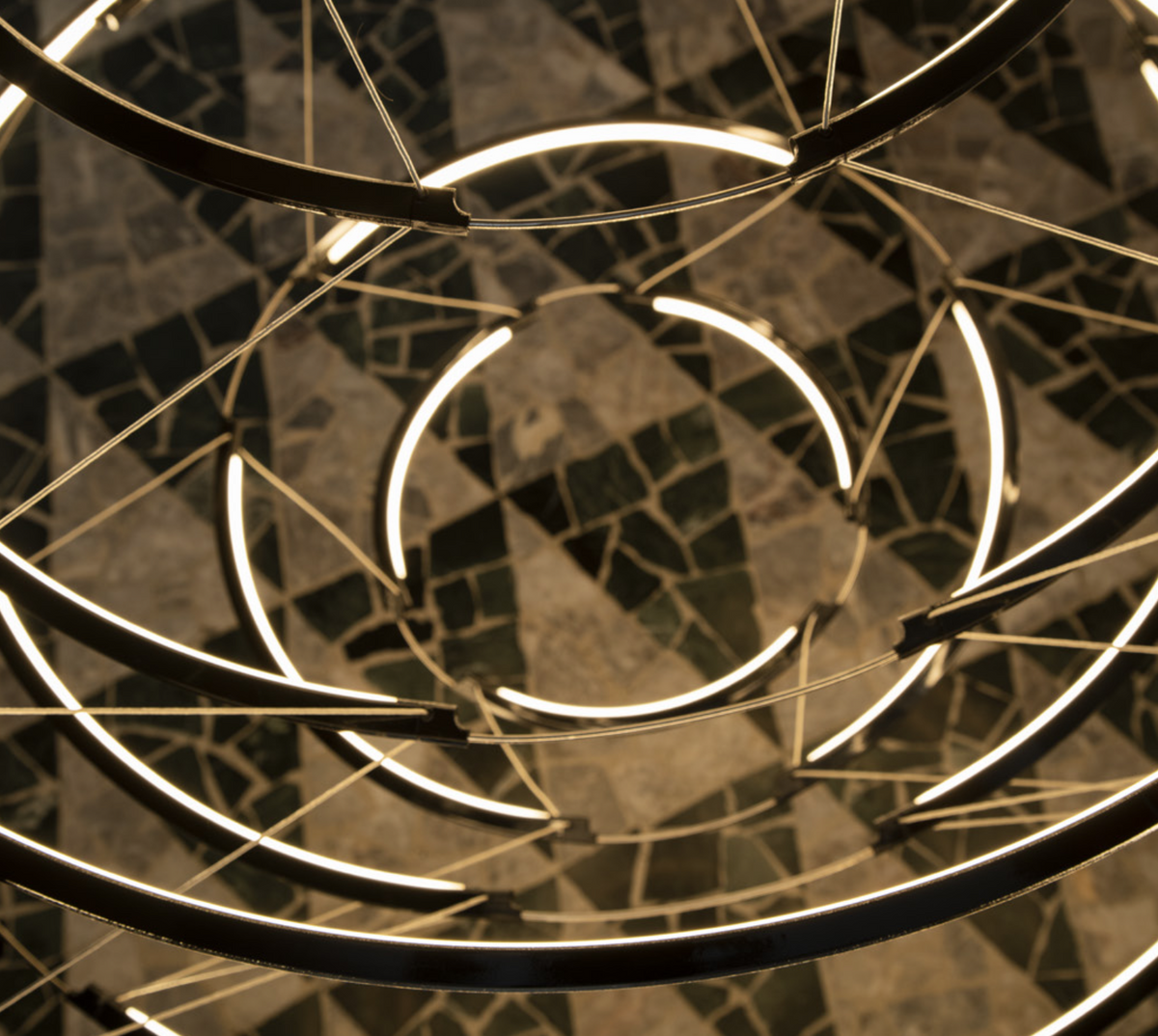The Drop 9 pendant lamp by Nemo Lighting, features aluminum construction, provides soft diffused light. The miniaturized connections give a lightweight effect. Available in three sizes and colors.