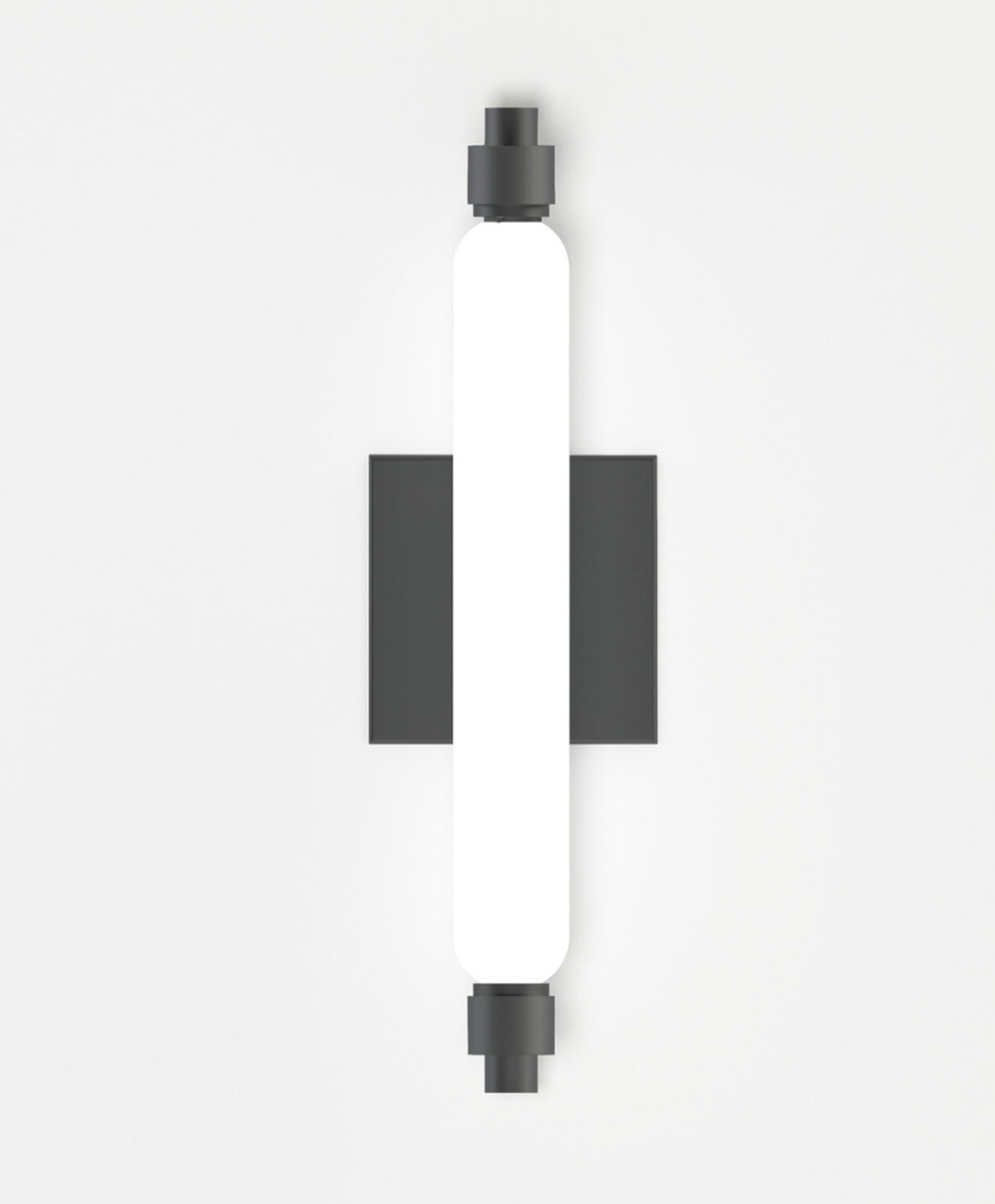 La Roche wall lamp by Nemo Lighting, features a matt metal frame and opal glass diffuser. Dimensions: h 37 x w 4.5 x d 7 cm