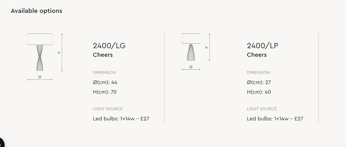 - The Cheers table lamp by Italamp has an elegant and very simple design that can be adapted to different environments. The body made of decorated glass is available in different colours to match the colour of the lampshade.