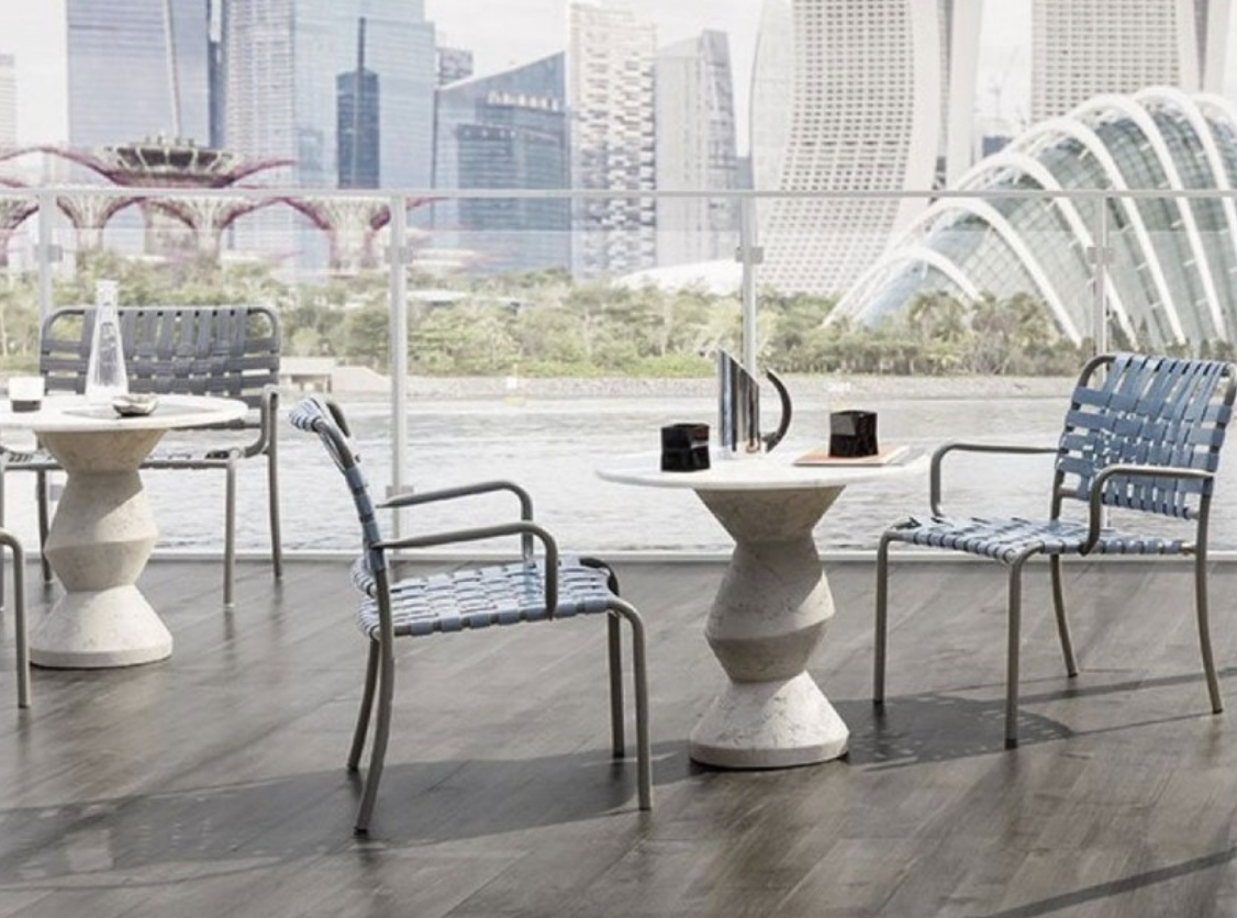 - The Inout 837 table by Gervasoni 1882, with its white Carrara marble top resting directly on the base or slightly raised, has an asymmetrical totem structure. Available in two heights.