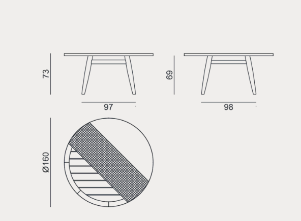 - Dimensions: top Ø 160 x H 73 cm