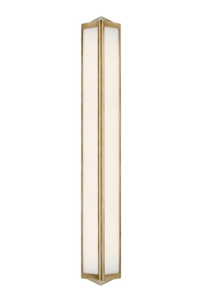 • Geneva Large wall lamp by Ralph Lauren Home, with a hint of Art Deco inspiration, in natural brass, available in three sizes and finishes.