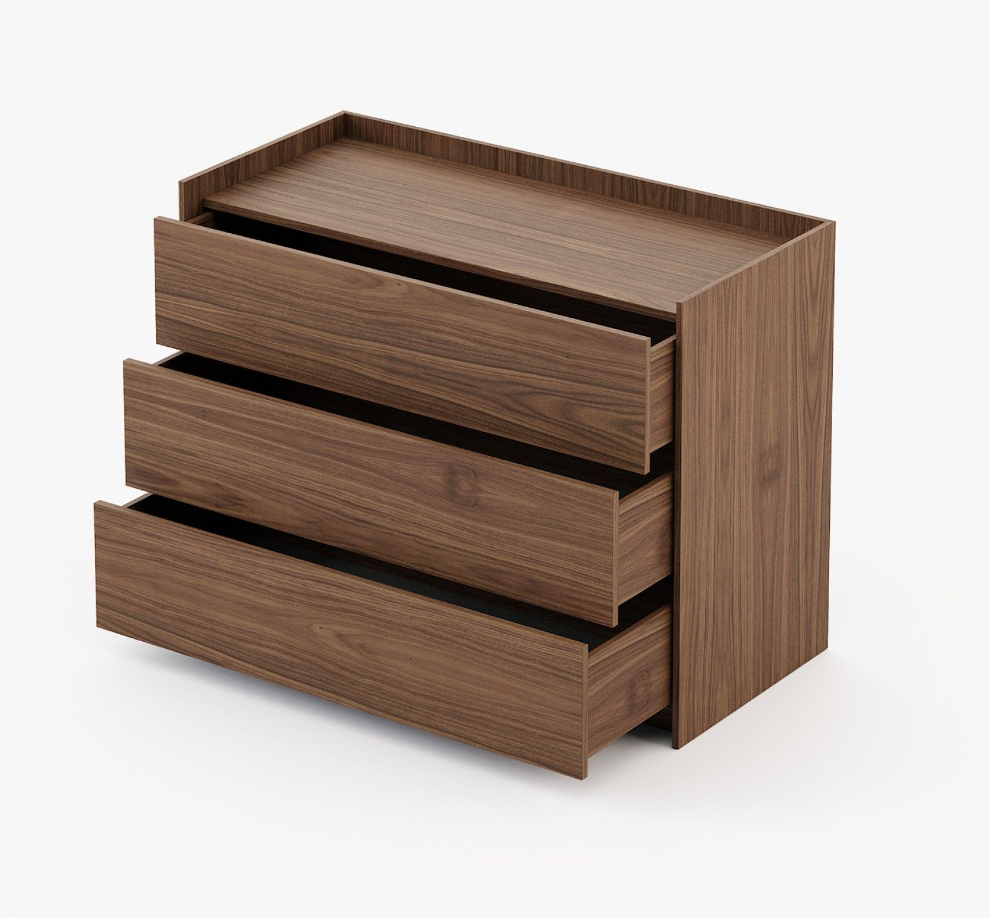 • The Endy chest of drawers by Laskasas, finished in matte walnut veneer. Made of durable materials, it offers options in a variety of finishes