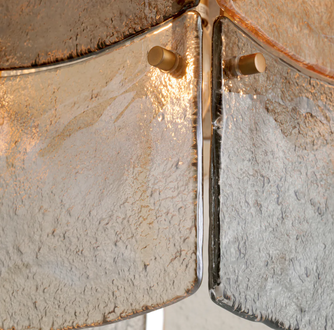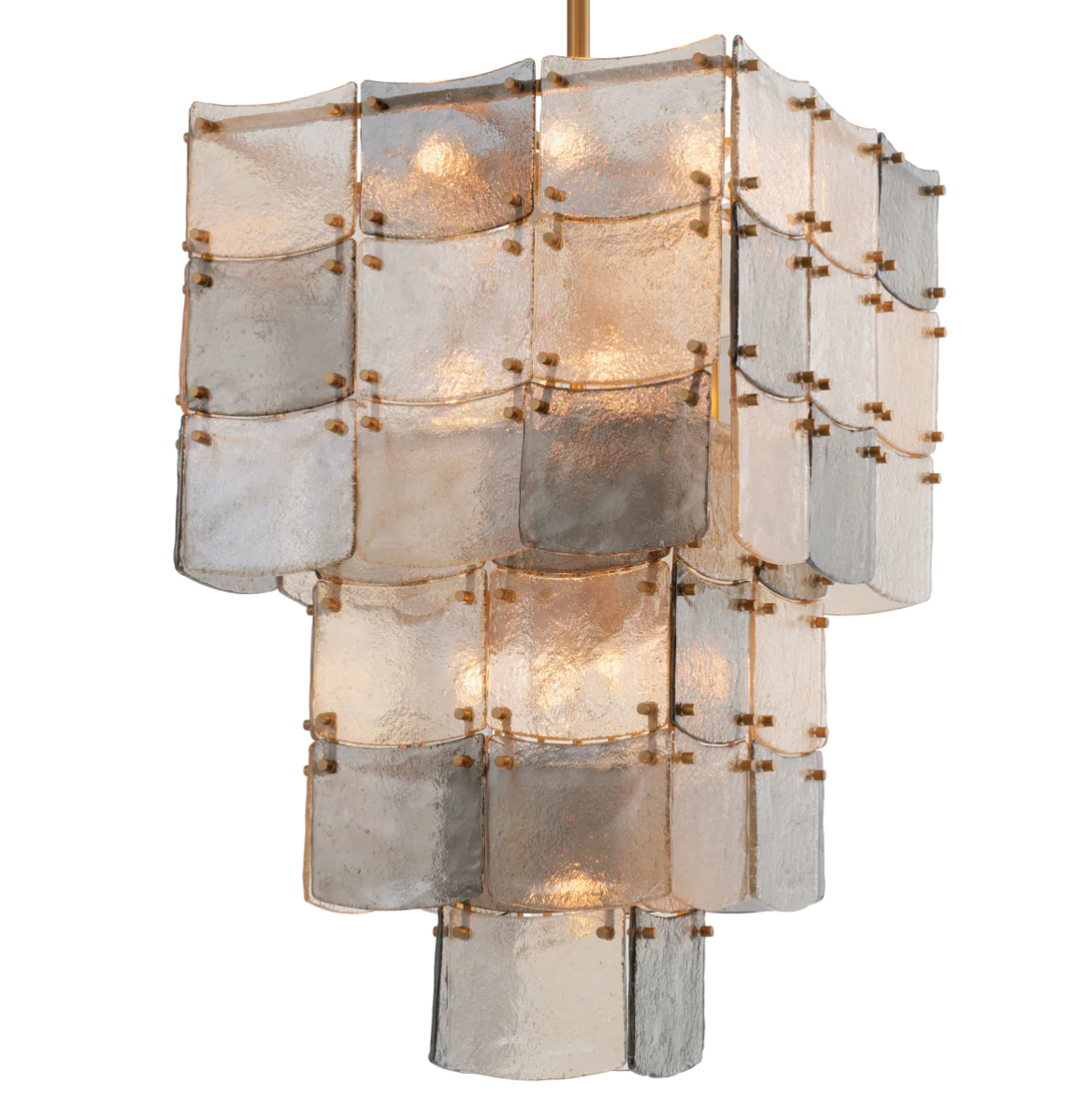 • The Laurent chandelier by Eichholtz, features an antique brass finish | handmade smoked glass, casts a warm glow.