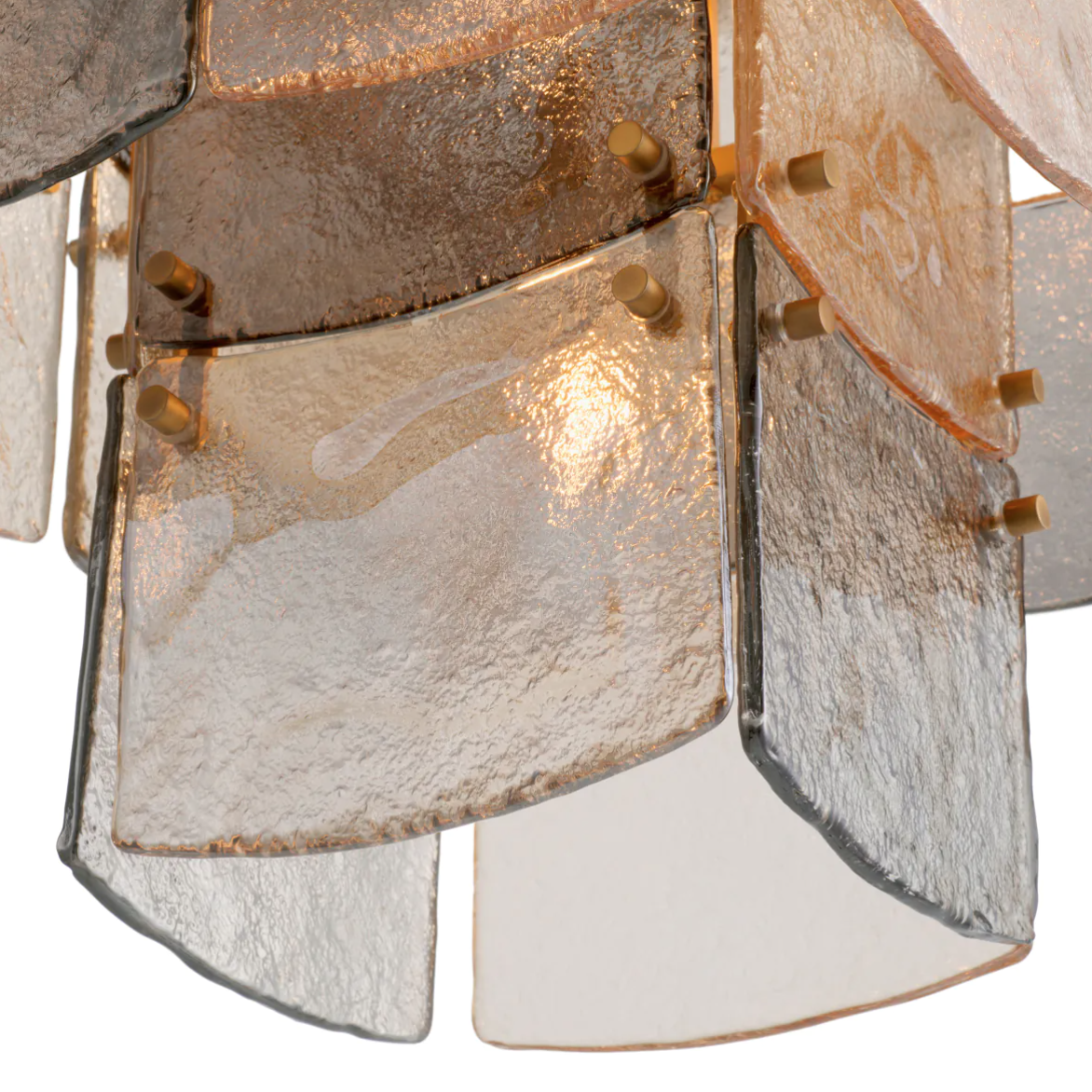 The Laurent chandelier by Eichholtz, features an antique brass finish | handmade smoked glass, casts a warm glow. Dimensions: W 56 | D 56 | H 86.5 cm