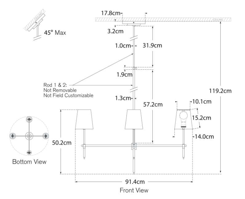 - Dimensions: 119.4 x 91.4 x Canopy: 17.8 cm round