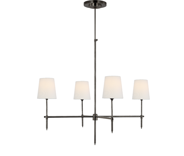 - Bryant Large chandelier by Thomas O'Brien, in brown with linen shades.
